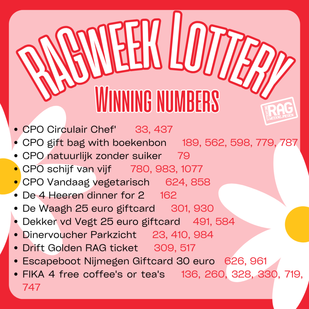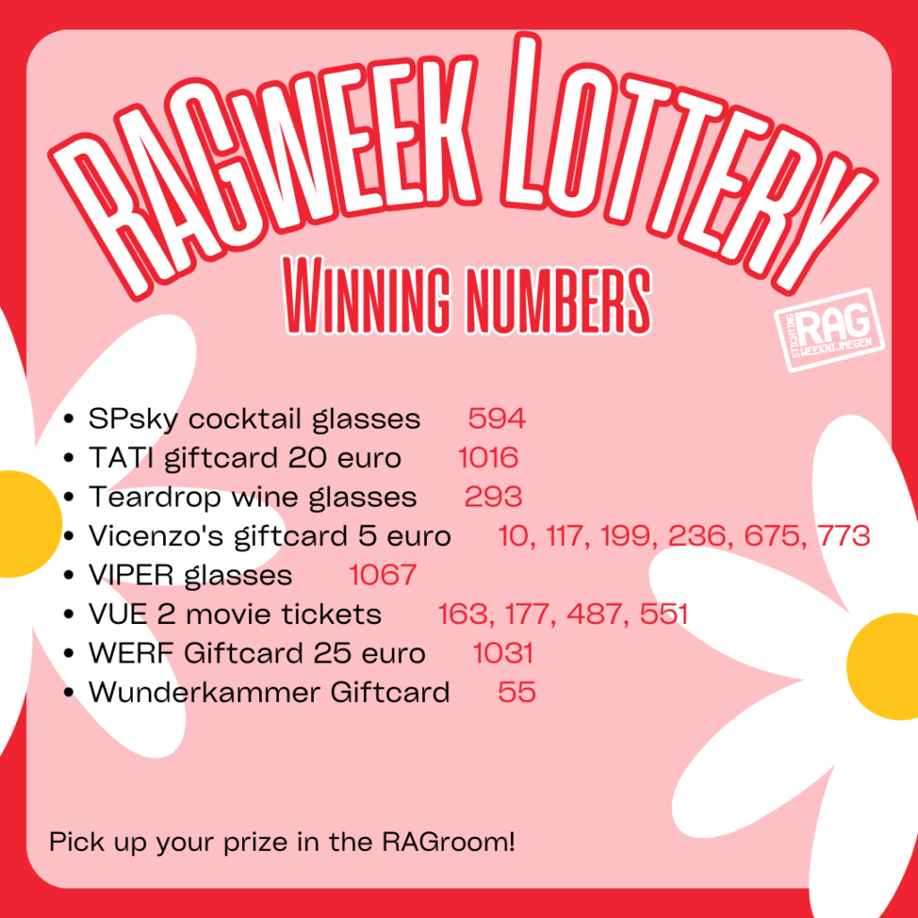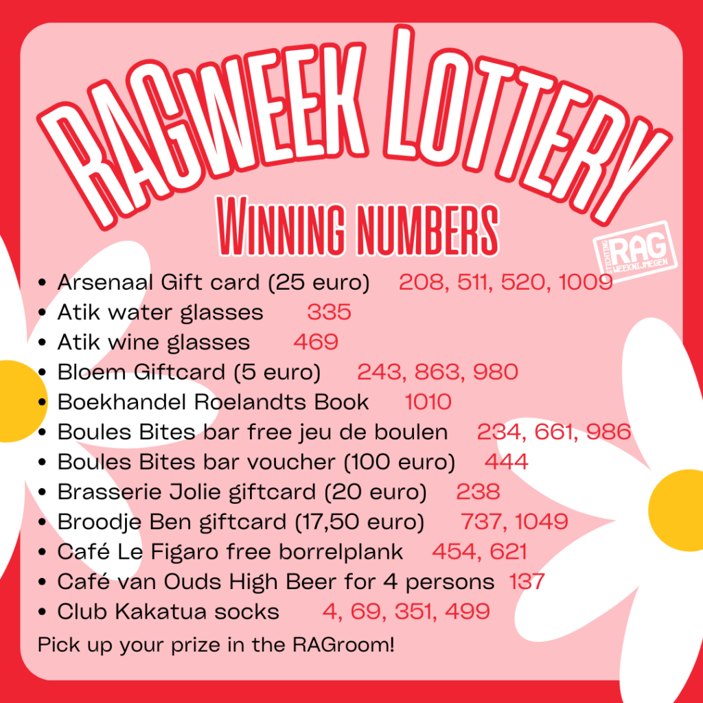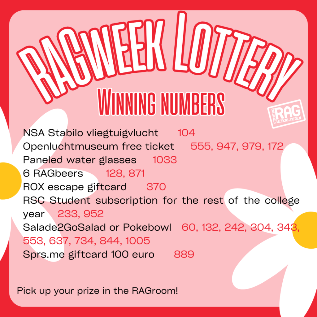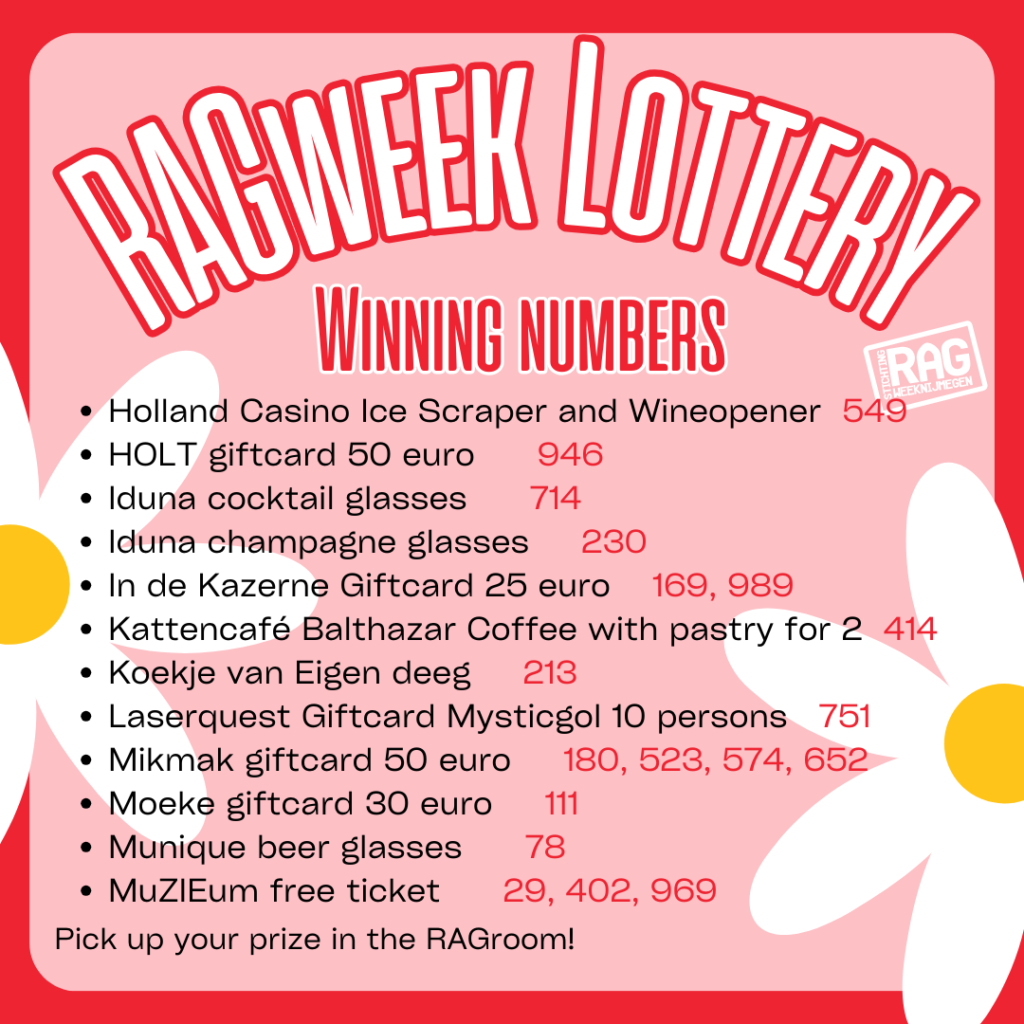 Have you won something? Check your e-mail to see when you can get your prize at the RAG-office! Don’t forget to check your spam folder if you can’t find our e-mail!