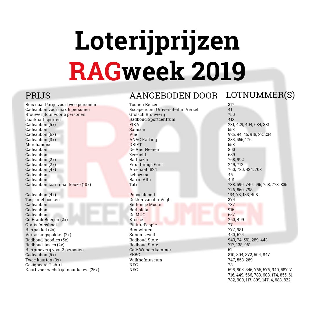 Voor de overgebleven prijzen hebben wij een hertrekking gedaan! De prijzen kunnen in de pauzes van 7 en 9 mei opgehaald worden op ons kantoor.